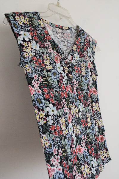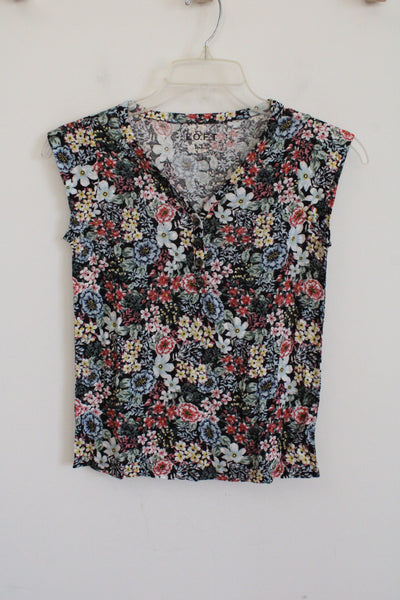 NEW Ann Taylor LOFT Black Floral Linen Top | XXS Petite
