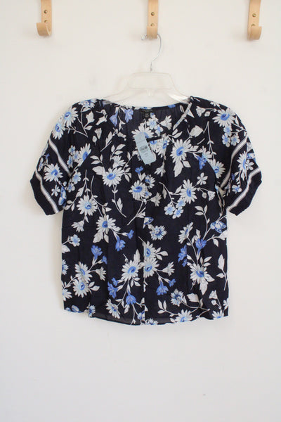 NEW Ann Taylor Navy Blue Floral Top | XXS Petite
