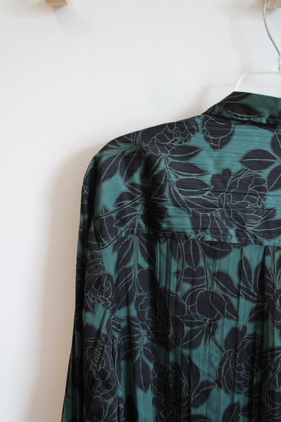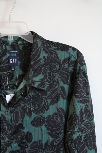 NEW Gap Emerald Green & Black Floral Button Down Top | XL