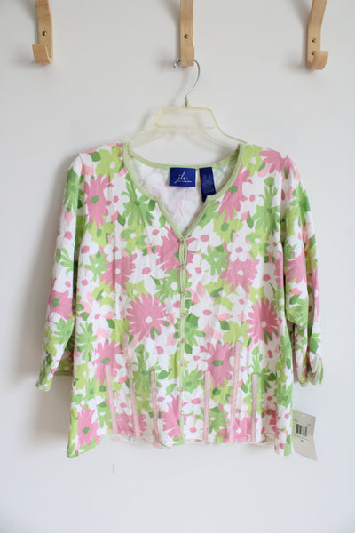 NEW J.H. Collectibles Pink Green & White Floral Cardigan | XL