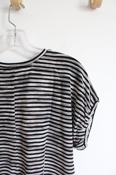 NEW LOFT Black & White Striped Textured Top | XXS Petite
