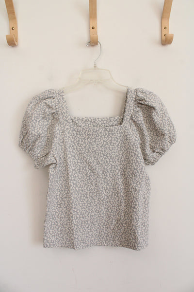 NEW LOFT Gray & Cream Patterned Top | XS Petite