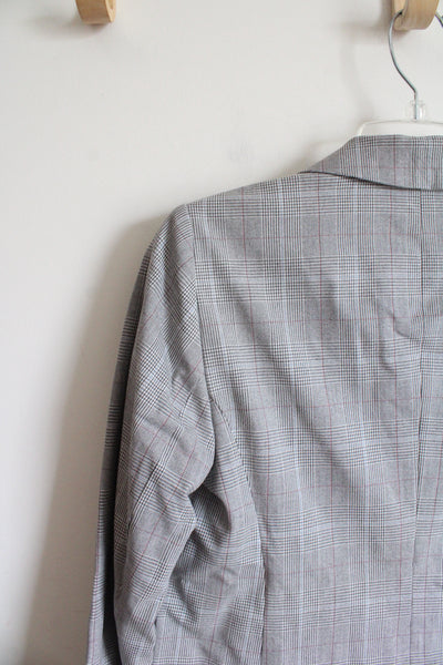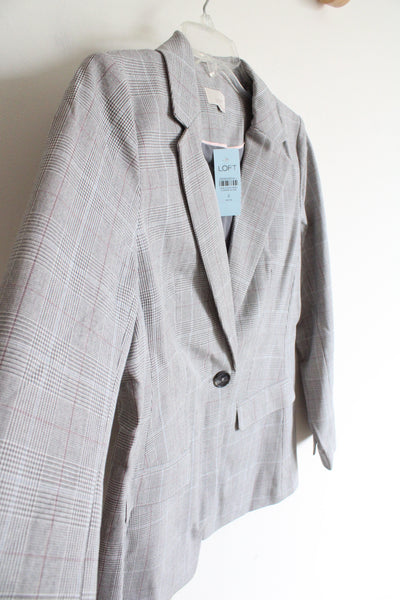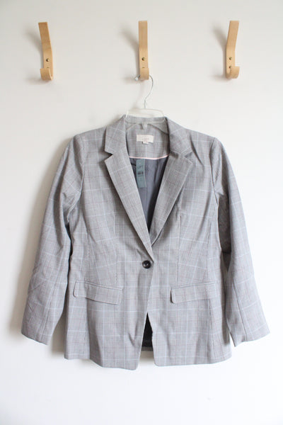 NEW LOFT Gray White Blue & Pink Houndstooth Blazer | 2 Petite
