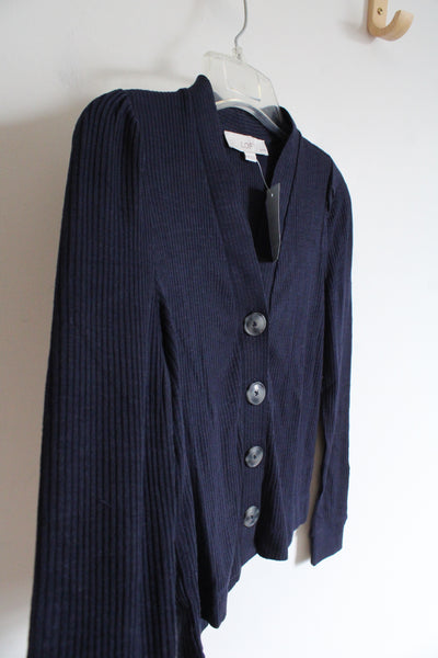 NEW LOFT Navy Ribbed Button Down Cardigan | XXS Petite