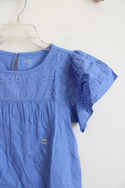 NEW LOFT Periwinkle Blue Eyelet Ruffled Sleeve Top | XXS Petite