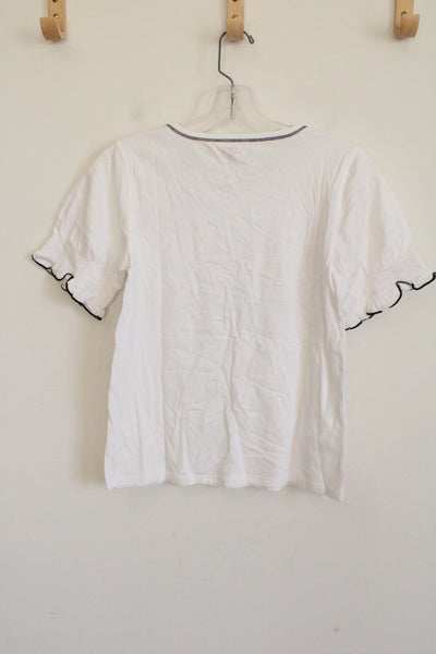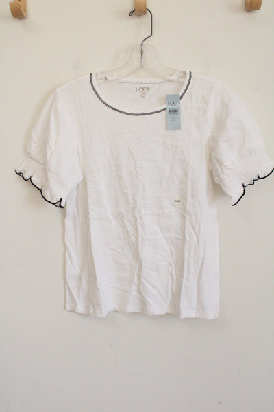 NEW LOFT White Black Stitch Tee | XXS Petite