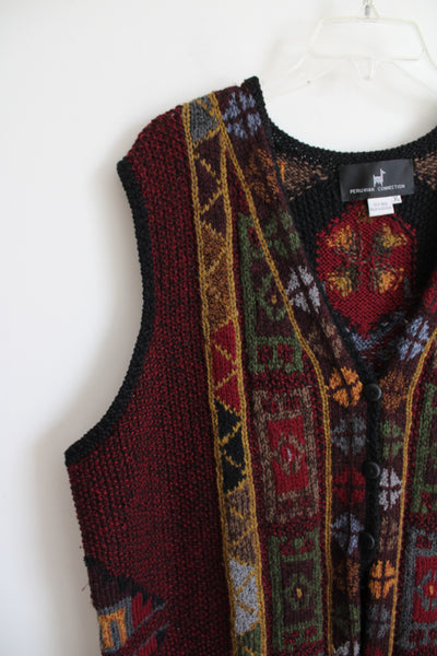 Peruvian Connection Red Wool Duster Sweater Vest | XL