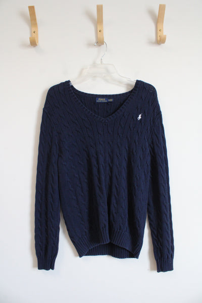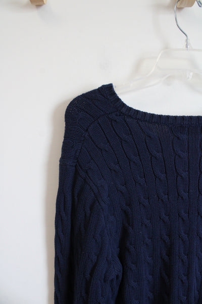 Polo Ralph Lauren Navy Cable Knit V-Neck Sweater | XL