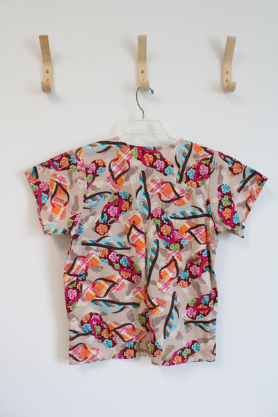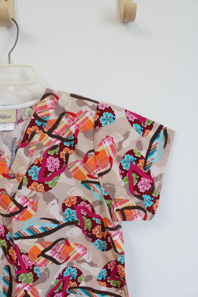 Tafford Multi-Colored Flip Flop Scrub Top | XXS