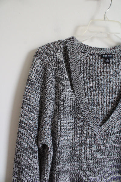 Torrid Black & Gray V-Neck Sweater | 1 (XL)