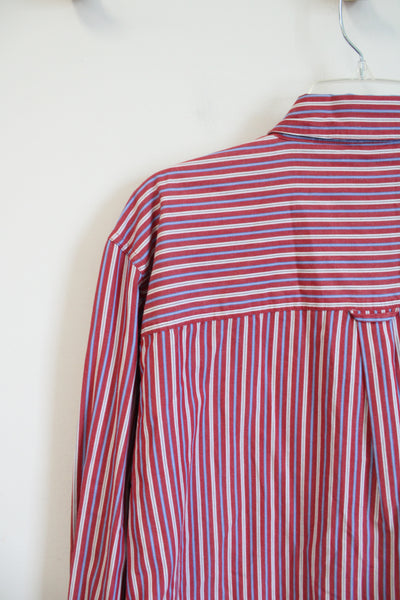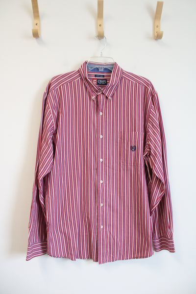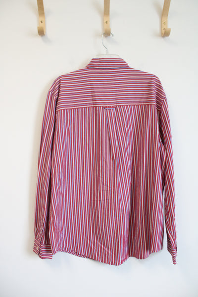 Chaps Easy Care Red Blue & White Striped Button Down Shirt | XL