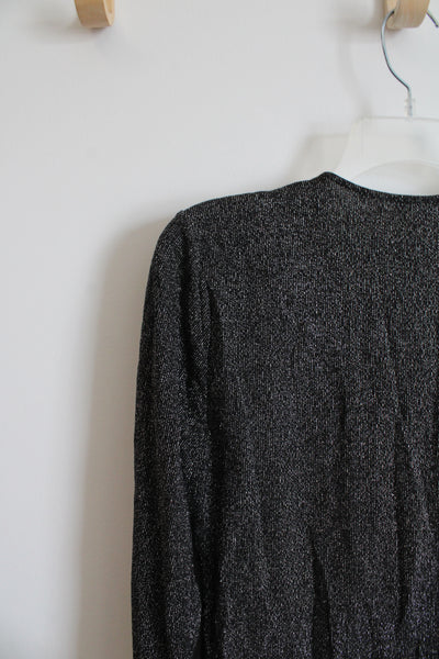 Ann Taylor Black Silver Metallic Bodysuit | L
