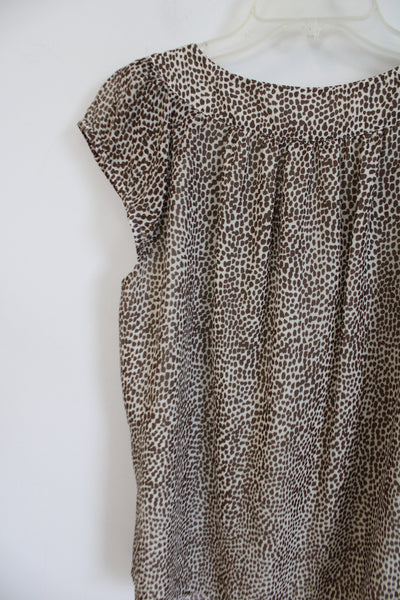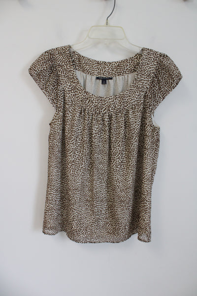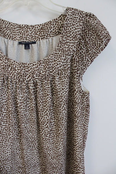 Anne Klein Brown & Tan Patterned Cap Sleeved Top | M