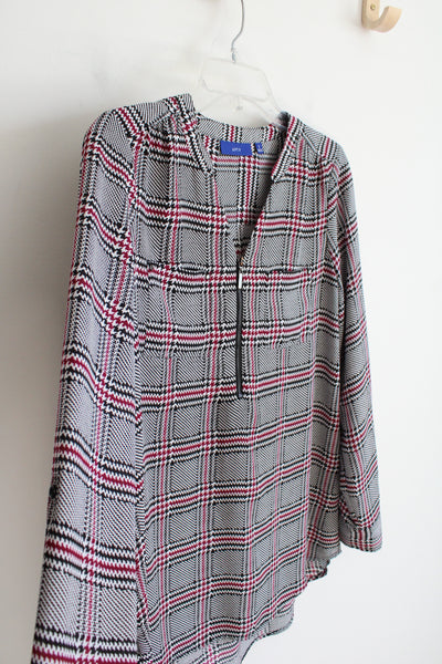 Apt. 9 Black Pink & White Patterned Quarter Zip Top | S