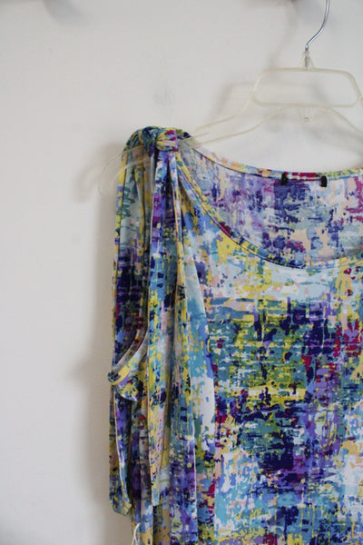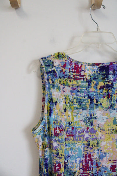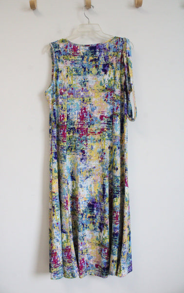 Blue Purple & Yellow Patterned Sleeveless Dress | L