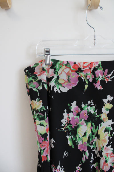 Chaps Black Colorful Floral Ruffled Skirt | L