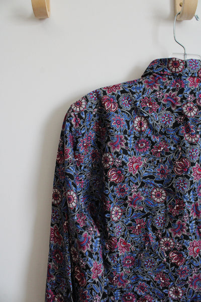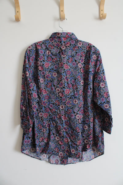 Chaps Blue & Pink Floral Button Down Top | XXL