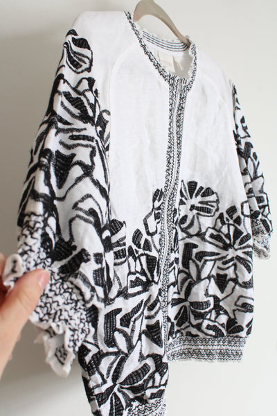Chico's Black White Linen Embroidered Jacket | Size 1 (MED/8)