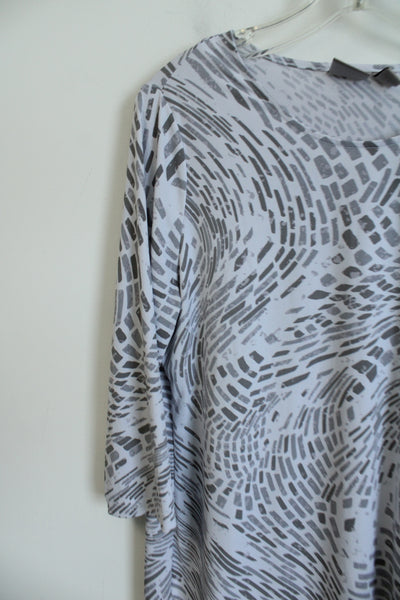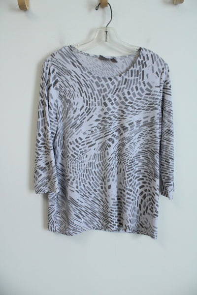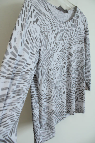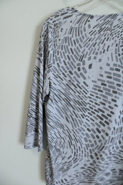 Chico's Gray White Patterned Long Sleeved Top | 1 (M/8)