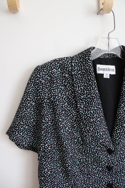 Danny & Nicole Black Blue & White Dotted Button Down Top | 10