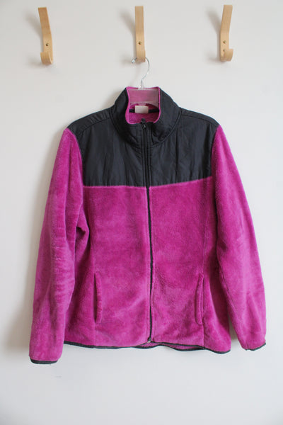 Danskin Now Pink & Gray Fuzzy Full Zip Jacket | XL