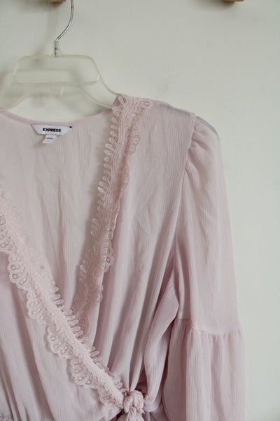 Express Light Pink Sheer Wrap Lace Edged Top | L