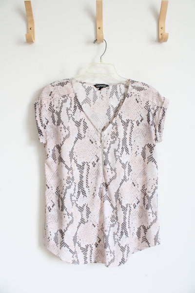 Express Pink White & Gray Snakeskin Patterned 1/4 Zip Top | M