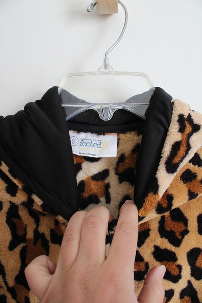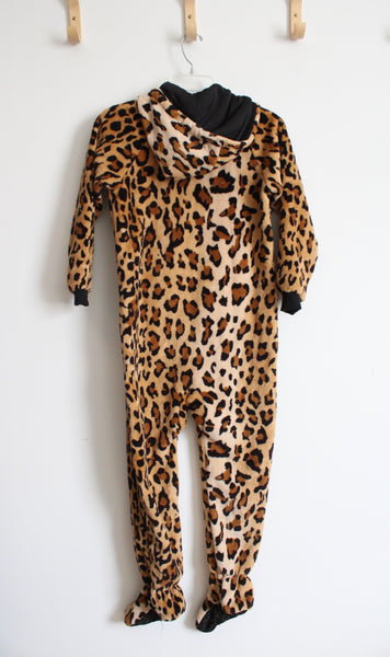 Footed Pajamas Black & Brown Leopard Print Fuzzy Footed Pajamas | S