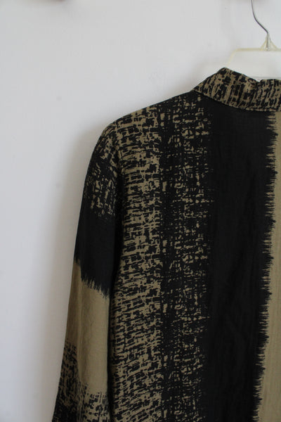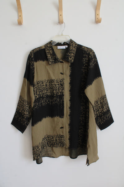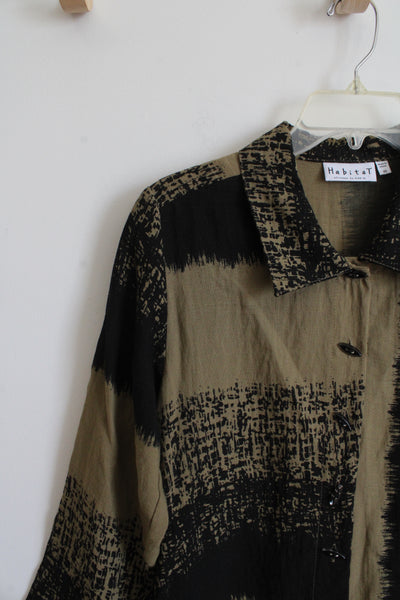 Habitat Olive Green & Black Patterned Button Down Top | XS