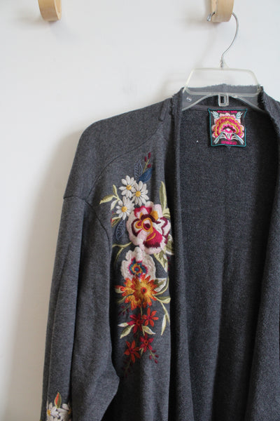 Johnny Was Gray Embroidered Floral Cardigan | 0X