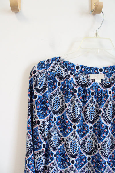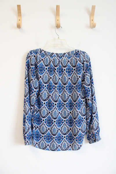 LOFT Blue & White Patterned Long Sleeved Top | XS