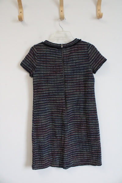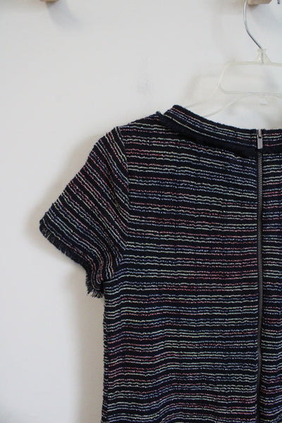 LOFT Navy Colorful Striped Textured Dress | 0 Petite