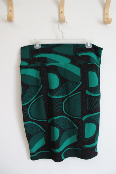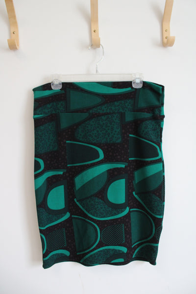 LuLaRoe Green & Black Patterned Pencil Skirt | L