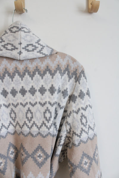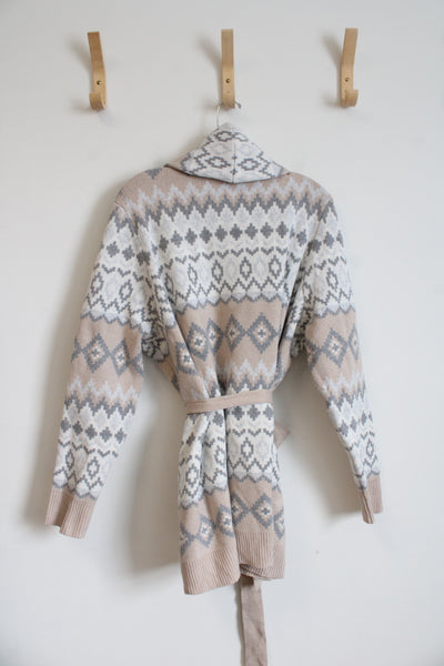 Martha Stewart Gray Tan & White Patterned Belted Cardigan | XXXL