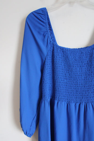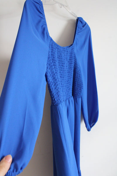Nannette Cobalt Blue Long Sleeved Chiffon Smocked Dress | 6