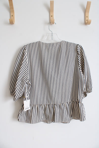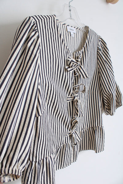 NEW Cece Blue & Cream Striped Tied Bow Front Peplum Top | M