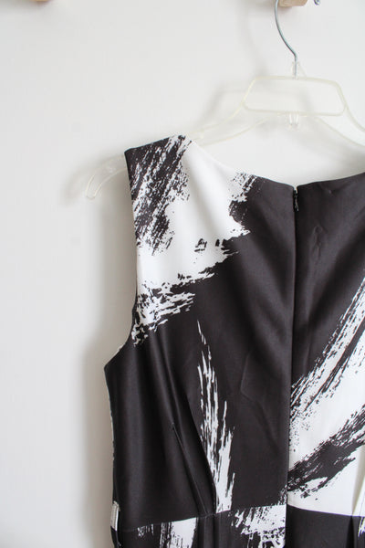 NEW Donna Karan Black & White Brush Stroke A-Line Midi Dress | 10