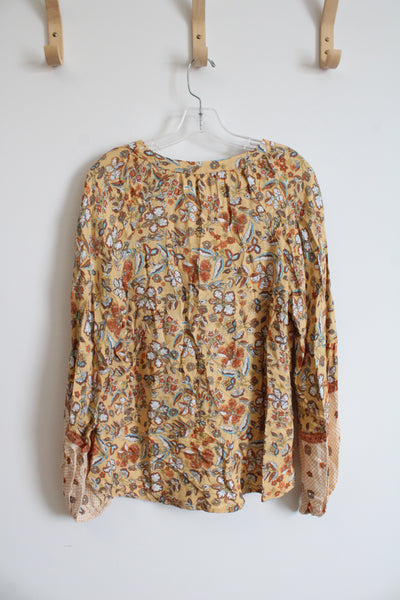 NEW Heyson Yellow Blue & Orange Floral Patterned Button Down Top | S