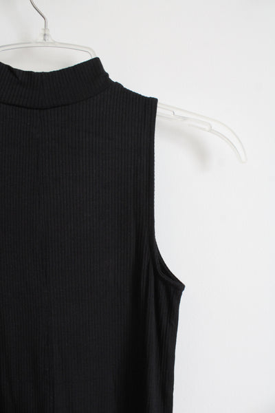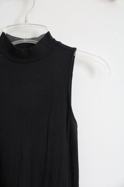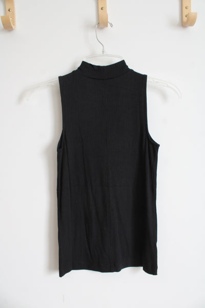 NEW LOFT Black Ribbed Mock Neck Tank Top | XXS Petite