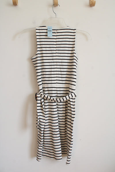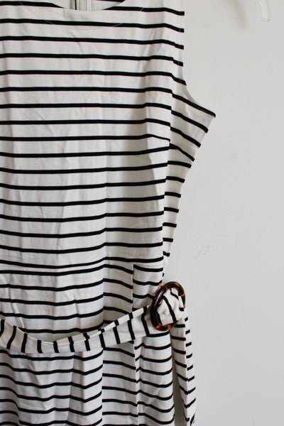 NEW LOFT Cream & Black Striped Belted Dress | 0P