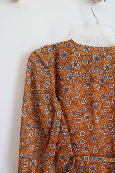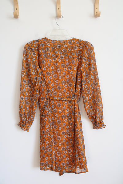 NEW LOFT Orange Cream & Blue Floral Long Sleeved Dress | XXS Petite