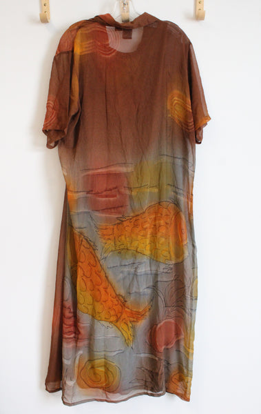 NEW Nancy-K New York Orange Brown Long Fish Print Motif Dress | L