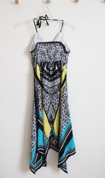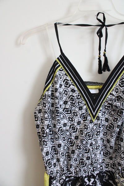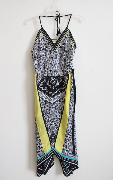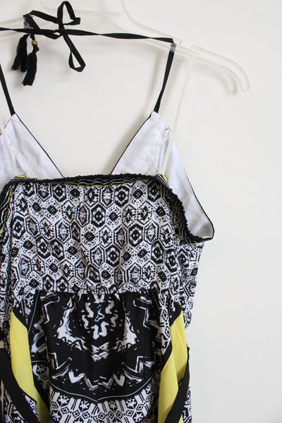 NEW New York & Company Black White & Yellow Halter Neck Maxi Dress | XL