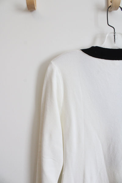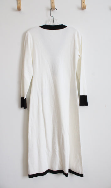 NEW Oyrosy White & Black Trim Knit Midi Dress | M
