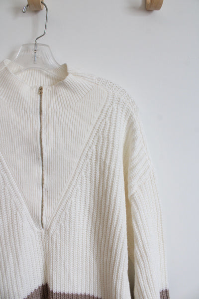 NEW Talbots Cream & Brown 1/4 Zip Tunic Sweater | L