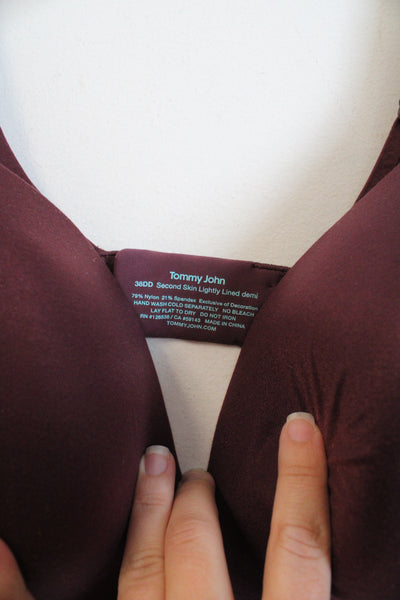 NEW Tommy John Second Skin Lightly Lined Wine Red Demi Bra | 38DD