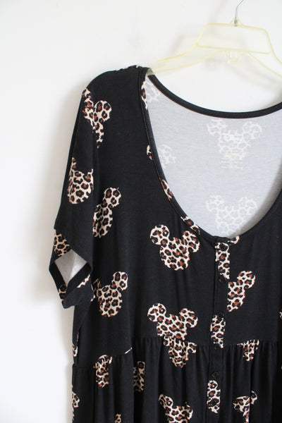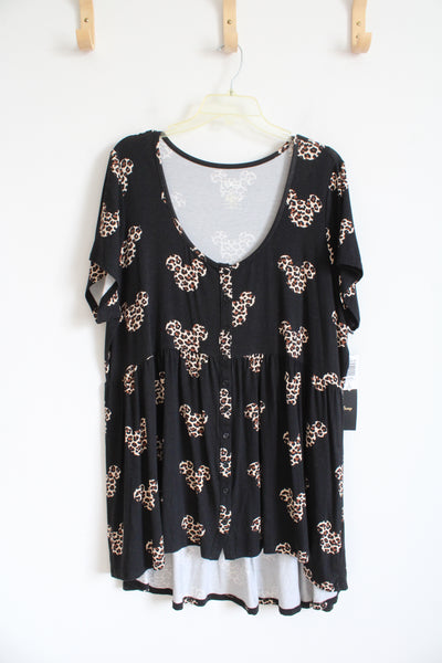 NEW Torrid Black & Brown Mickey Mouse Leopard Print Babydoll Tunic Top | 3X