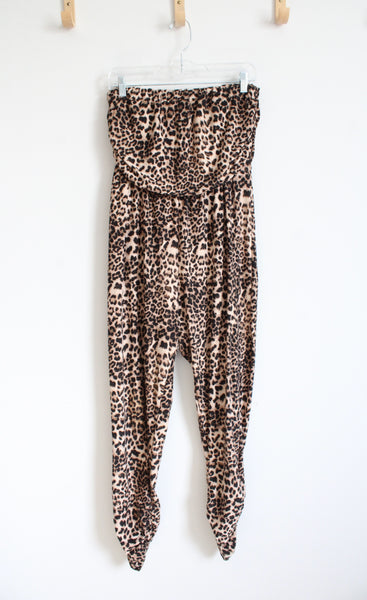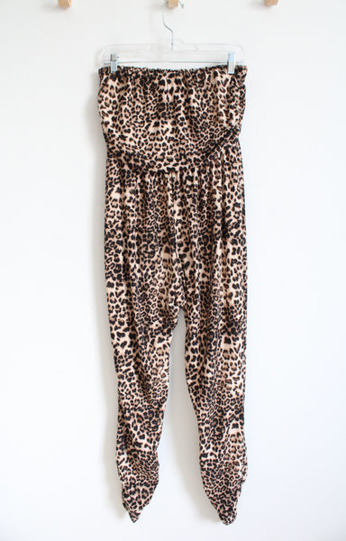 No Comment Tan & Black Leopard Print Strapless Jumpsuit | M
