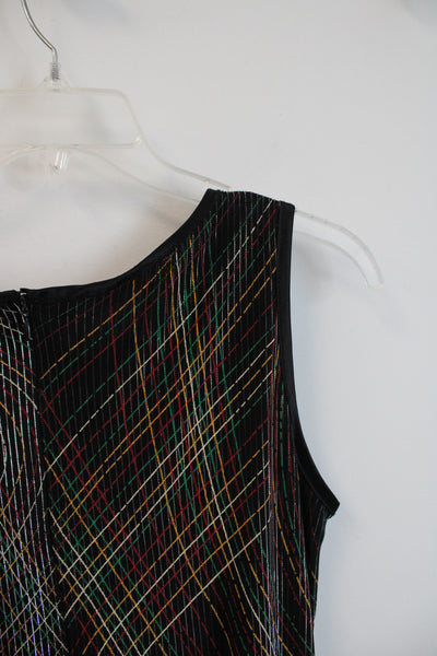 Red Green Yellow Striped Black Sleeveless Dress | M