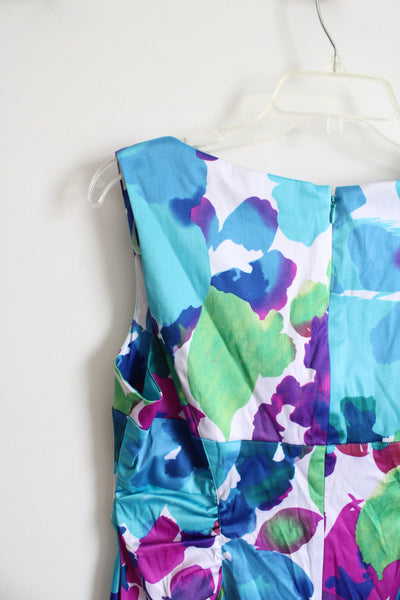 S.L. Fashions Blue Purple & Green Floral Sheath Dress | 14